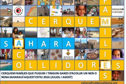 Aquest estiu 2016 tornen les Vacances en Pau per als nens i nenes sahrauís que podran ser acollits aquest període per les nostres famílies. Trobareu més informació sobre aquest projecte...