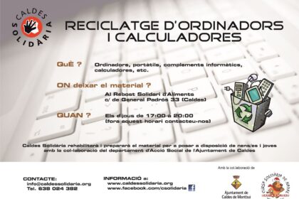 Aquest 2014 Caldes Solidària ha endegat un projecte de captació d’ordinadors i calculadores que un cop posats a punt puguin ser posats a disposició per a ús escolar a famílies...